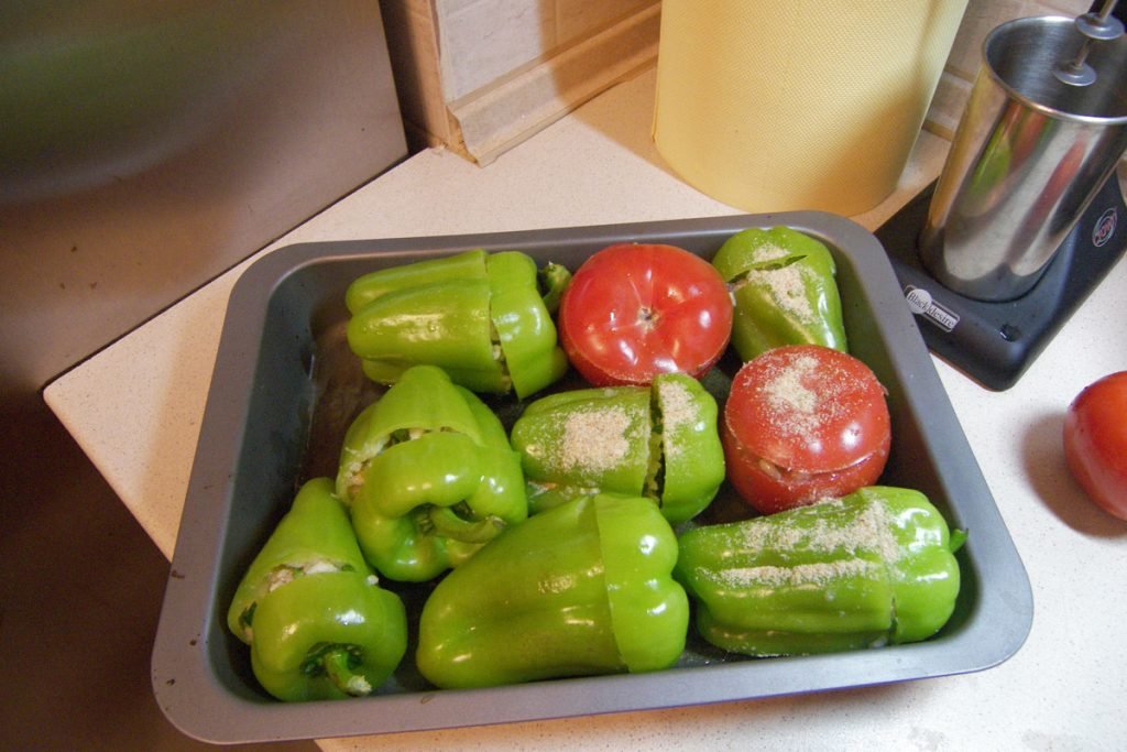 Taigi šiandien prikimštos paprikos ir pomidorai.