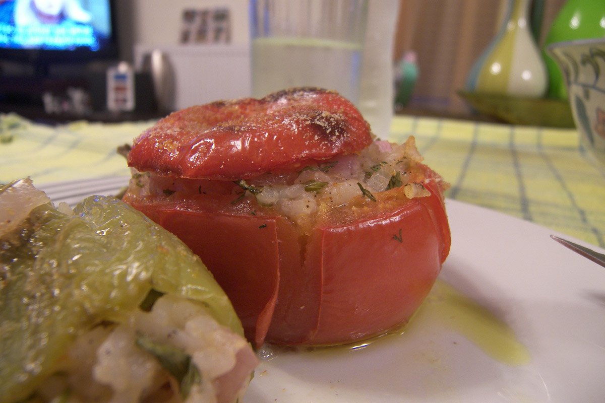 Labai lengvas pasigaminti patiekalas, kuris nėra kaloringas, tačiau labai skanus, tai – „Tomatulas gemista ir paprika gemista” (tai originalus graikiškas pavadinimas). Tomatula reiškia pomidorai, paprika – paprika. Gemista – prikimštas.